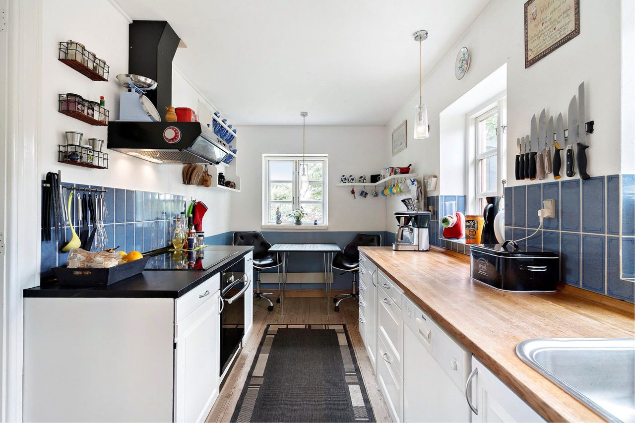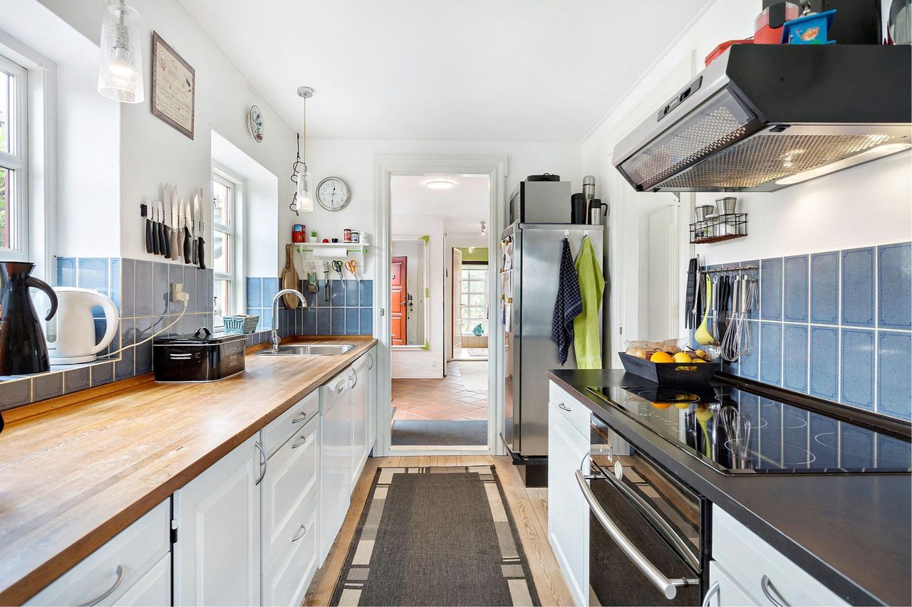 et rummeligt, sydvestvendt stuemiljø, et pænt spisekøkken samt en god entré med